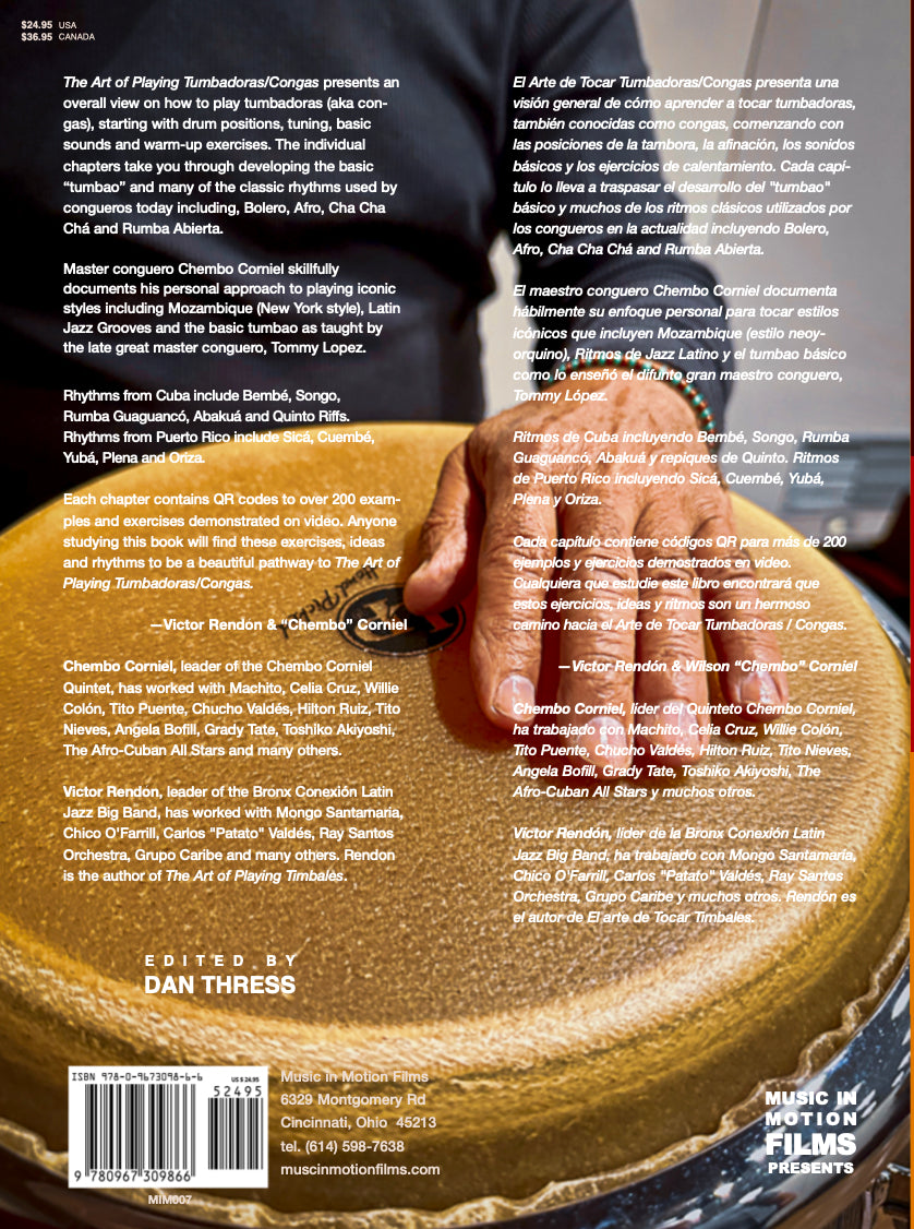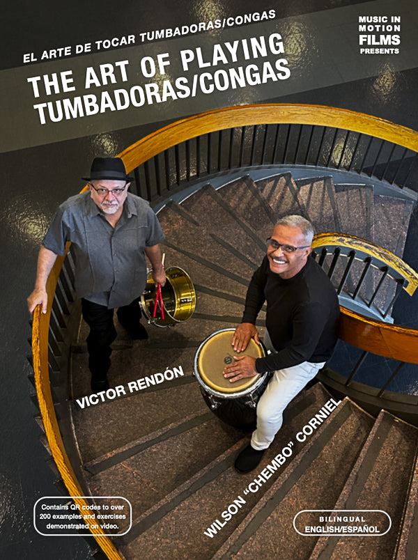 The Art of Playing Tumbadoras/Congas presents an overall view on how to play tumbadoras (aka congas), starting with drum positions, tuning, basic sounds and warm-up exercises. The individual chapters take you through developing the basic “tumbao” and many of the classic rhythms used by congueros today including, Bolero, Afro, Cha Cha Chá and Rumba Abierta.