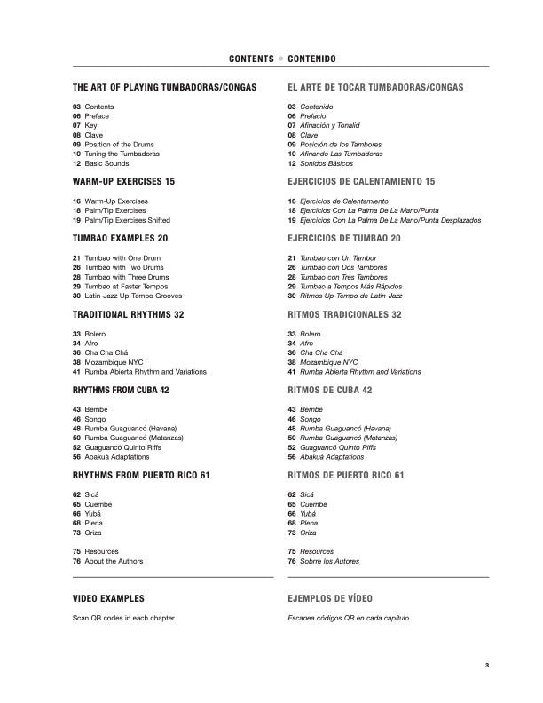 Each chapter contains QR codes to over 200 examples and exercises demonstrated on video. Anyone studying this book will find these exercises, ideas and rhythms to be a beautiful pathway to The Art of Playing Tumbadoras/Congas. —Victor Rendón & “Chembo” Corniel